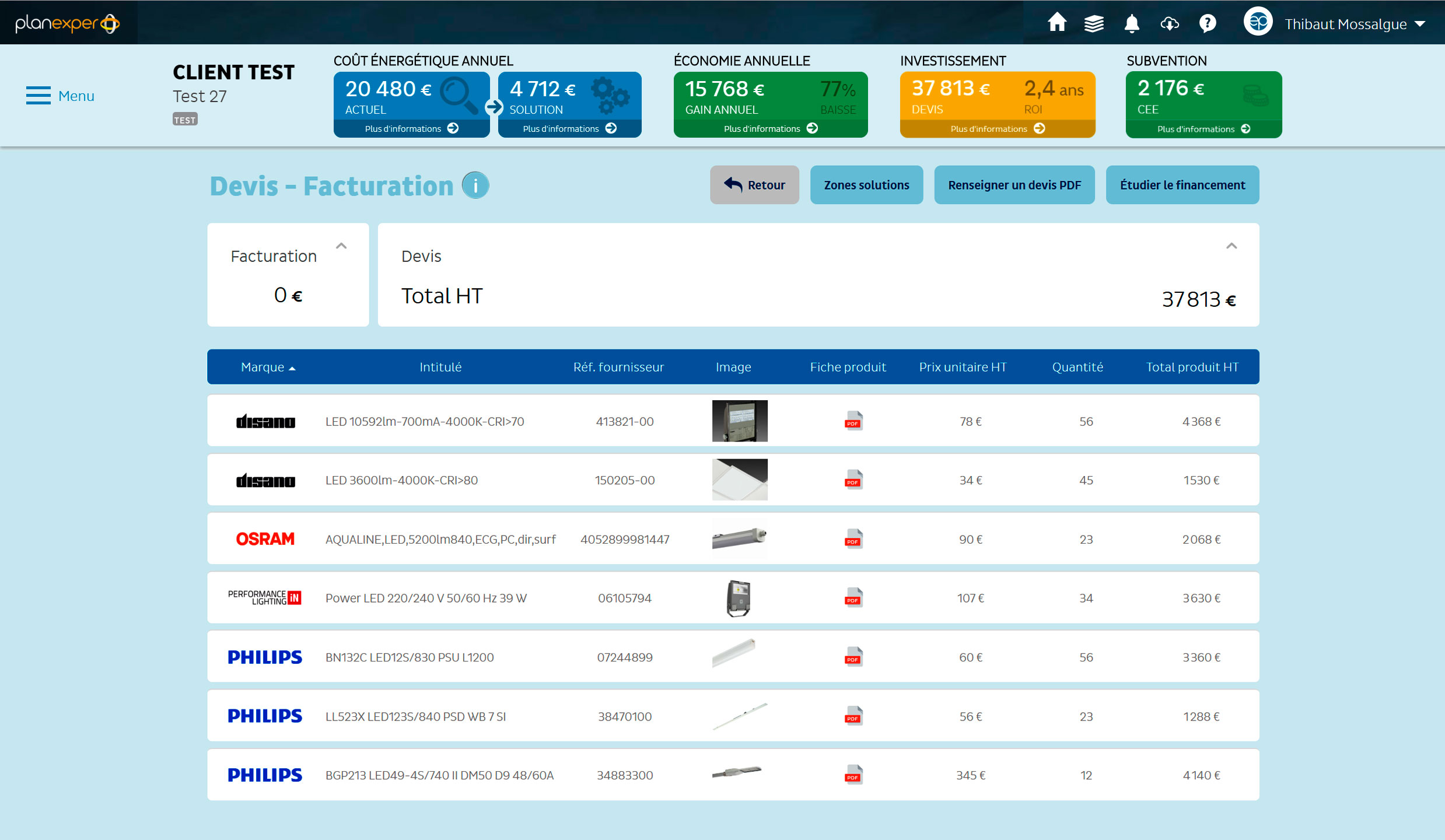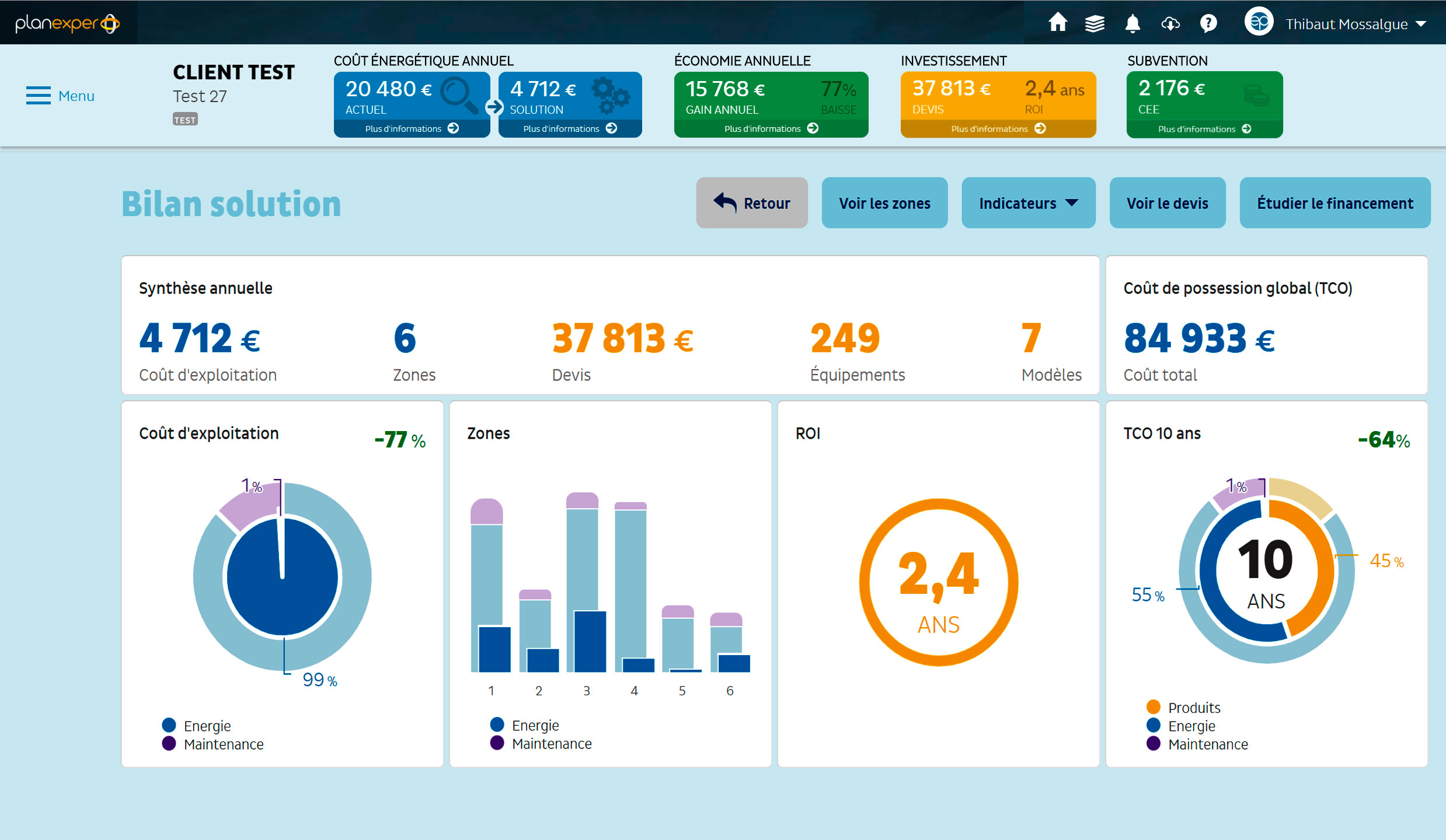 Accédez immédiatement au bilan détaillé des coûts par zone, type d’usages et équipements actuels.